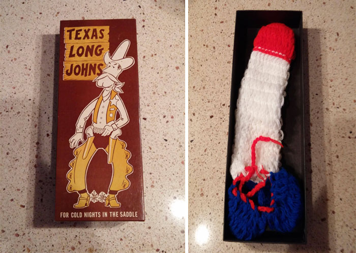 Опубликована подборка самых забавных, глупых, стёбных и странных подарков от бабушек. Иногда добрые старушки путают массажеры с фаллоимитаторами, футболки – с женскими ночными рубашками, цветочки – с листиками марихуаны, чашку – с вульгарным сувениром и т.д. Наиболее яркие примеры таких контрастных несоответствий приводится в данной публикации.