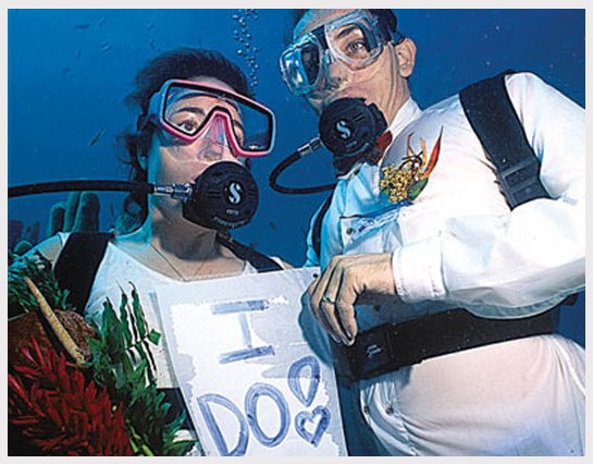Издание АВС опубликовало подборку наиболее экстраординарных свадебных церемоний. Некоторые из молодожёнов скрепили брачные узы под водой, и на вопрос «согласны ли вы взять её в жёны» женихи отвечали, выводя на специальной дощечке «да, согласен». Так, например, поступили молодожёны из Австрии и США.