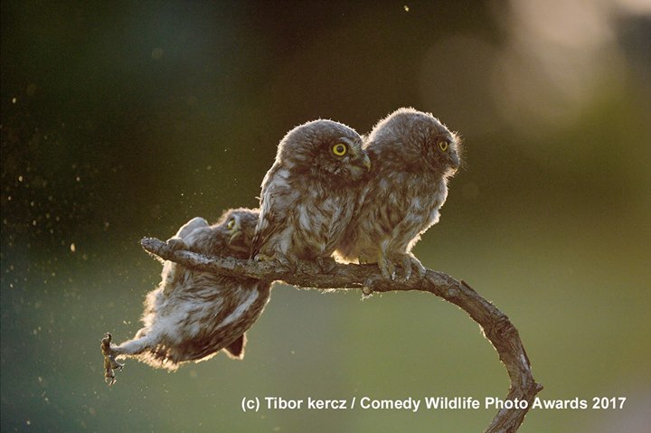Фотография нелепой совы, падающей с ветки, выиграла главный приз в конкурсе Comedy Wildlife Awards. Снимок сделал венгерский фотограф Тибор Керц.