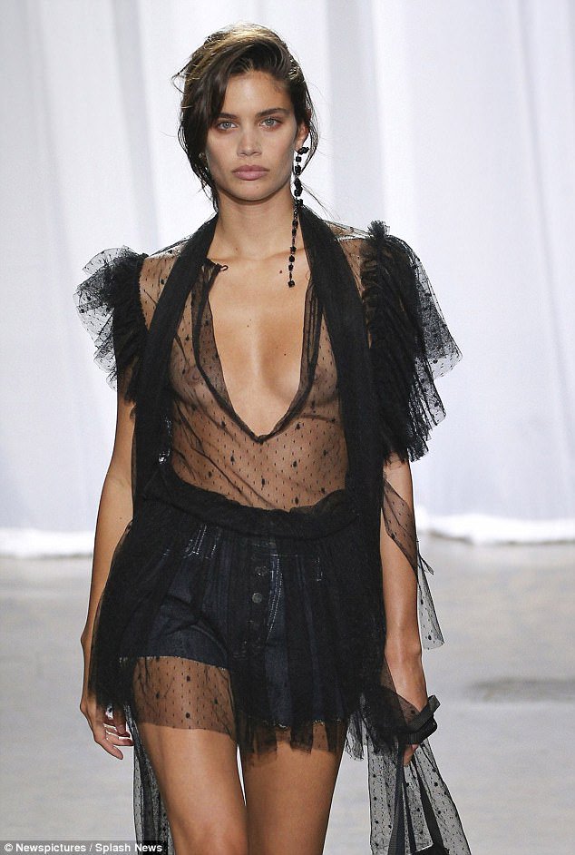 Супермодель Сара Сампайо прошлась с голой грудью на показе Zadig & Voltaire в рамках Недели моды в Нью-Йорке.