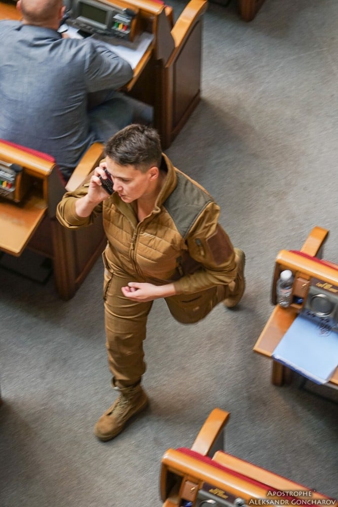 Нардеп решила сменить свой романтичный образ на наряд, напоминающий военную форму. Савченко пришла в Раду в штанах и куртке цвета хаки и массивных ботинках в тон наряду, пишет Апостроф.