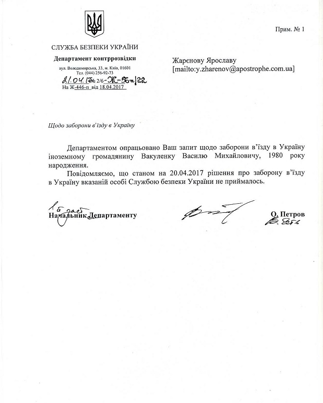 В официальном ответе СБУ от 20 апреля говорится о том, что российский рэпер не числиться в «черном списке», а значит может беспрепятственно выступать в Украине.