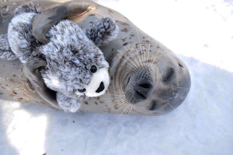 Счастливый тюлень с мягкой игрушкой в лапах покорил Сеть