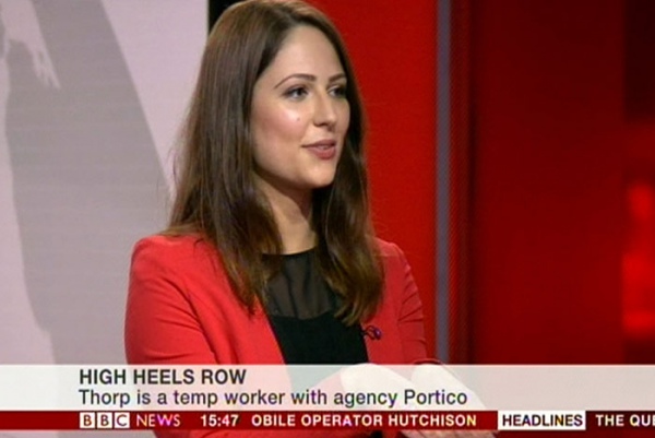 Никола Торп, которую на днях выгнали из лондонского офиса домой, потому что она пришла не на каблуках, начала сбор подписей под петицией за право женщин не носить такую обувь на работу.