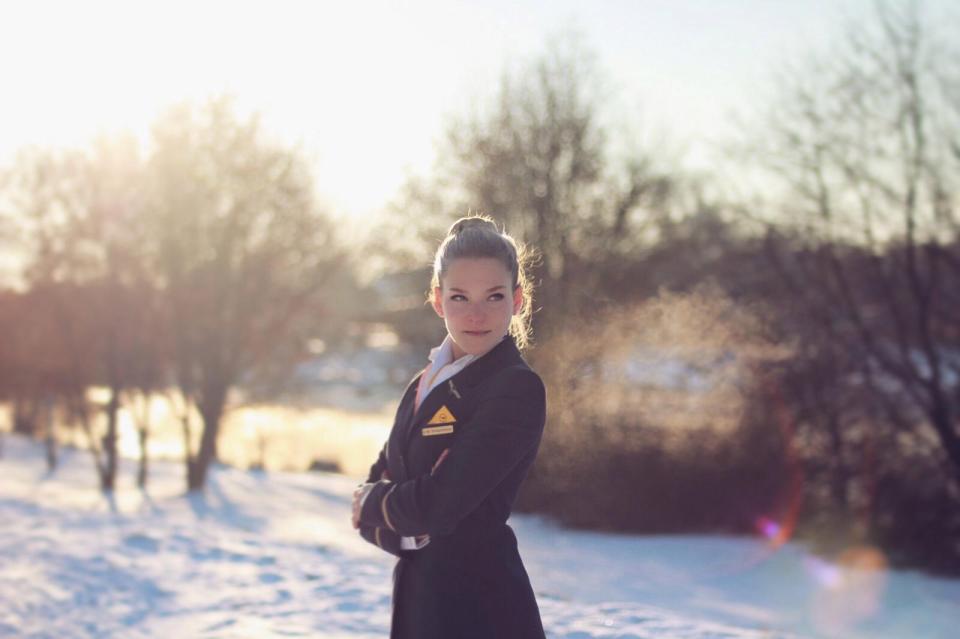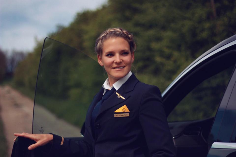 28-летняя немецкая стюардесса 6 лет назад решила связать свою жизнь с небом. Девушка нравиться то, что она может свободно путешествовать и даже получать, а не платить за то деньги.