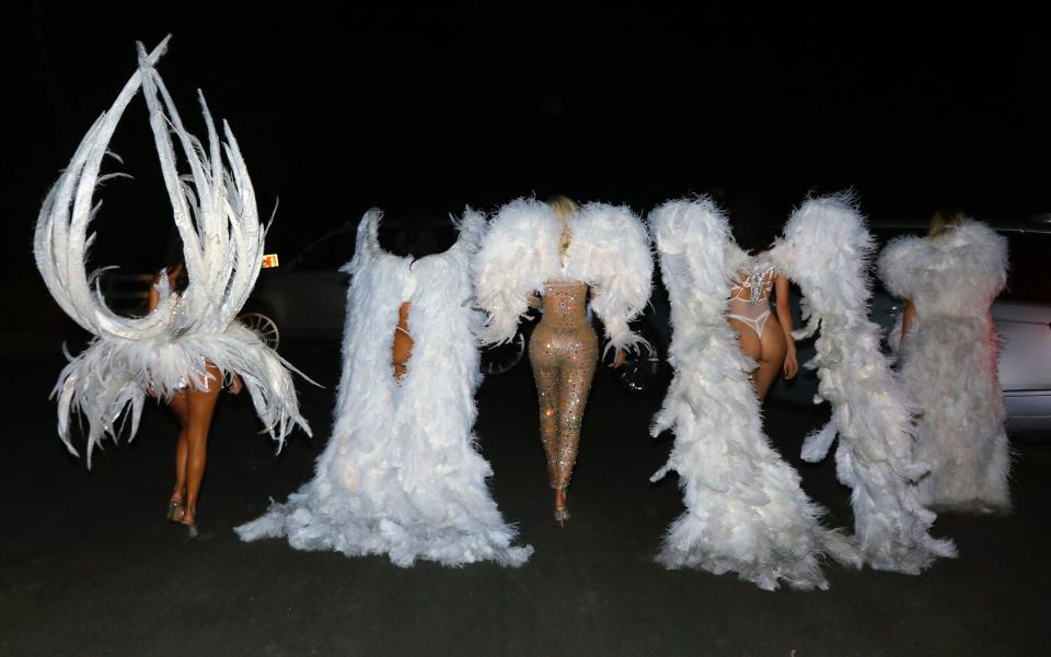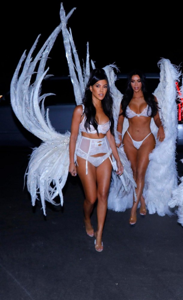 Именно в таком образе Кортни предстала вместе с сестрами на Хэллоуин. Тогда все женщины семейства Кардашьян облачились в наряды, идентичные тем, которые надевают на показах «ангелы» Victoria’s Secret.