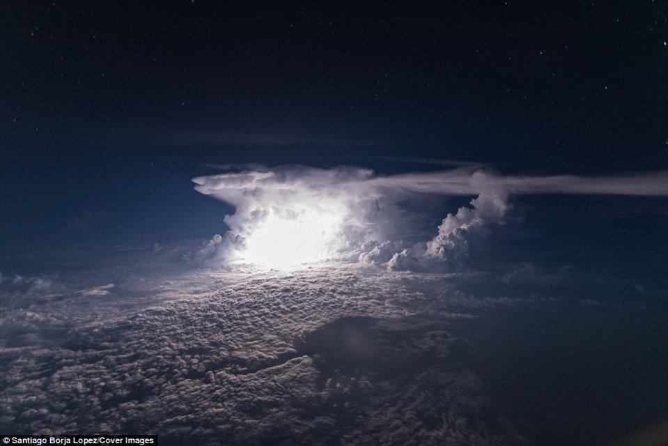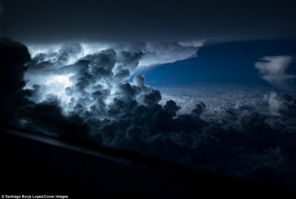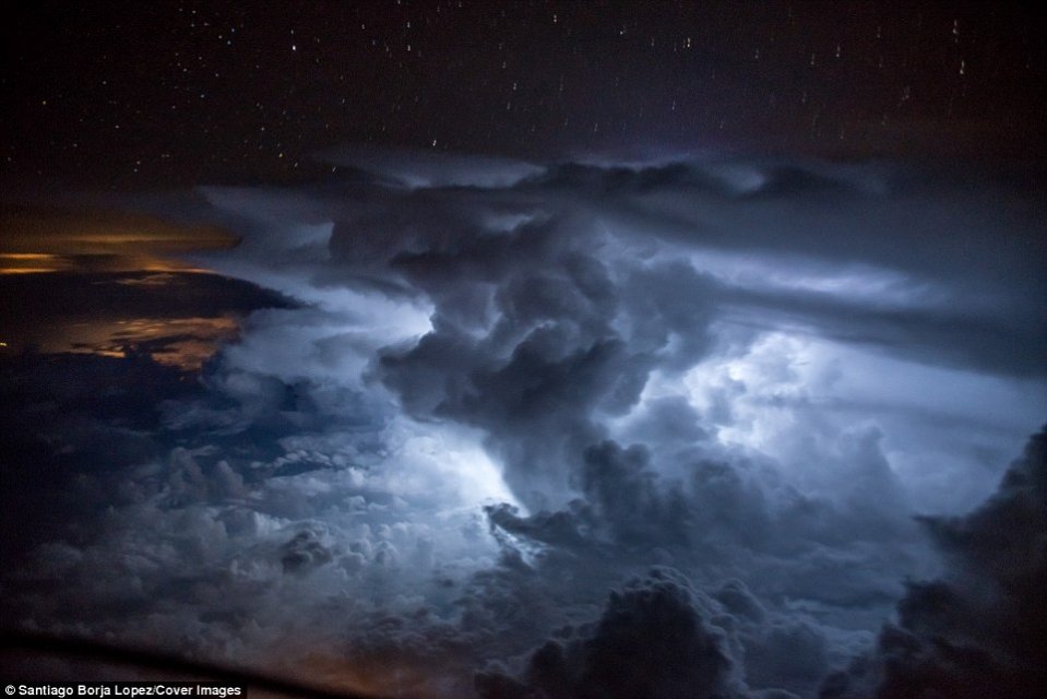 Пилот авиакомпании Ecuador Airlines Сантьяго Борха Лопес выложил удивительные фотографии, сделанные им во время одного из полётов, когда путь его самолёта пролегал над грозовыми облаками, повисшими над лесами Амазонии.