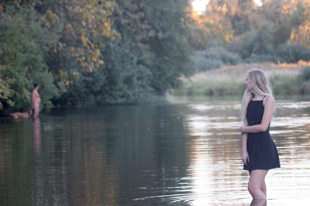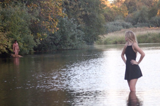 Старшеклассница фотографировалась на реке Уилламетт и для нескольких снимков зашла по колено в воду. Именно в этот момент на другом берегу появился выгуливавший пса обнаженный человек, которого и запечатлели на фотографиях.