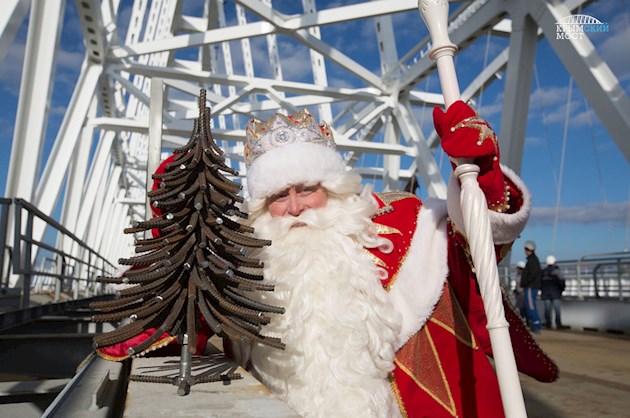 Российский Дед Мороз приехал на Таманский полуостров, чтобы увидеть Керченский мост.
