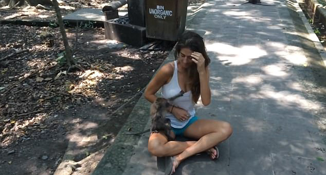 На Бали муж фотографировал свою жену вместе с ручными обезьянами, как вдруг зверушка начала лезть женщине в грудь, стягивая с нее майку, сообщает Unilad.