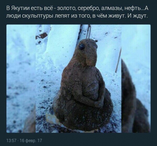 Скульптор из Якутии Михаил Боппосов создал фигуру Ждуна из навоза. Его создание продолжалось около двух недель. По словам художника, это произведение ему заказал московский журнал Life. До того, как ему позвонили из столицы с предложением взяться за такой проект, скульптор не знал, что такое Ждун.