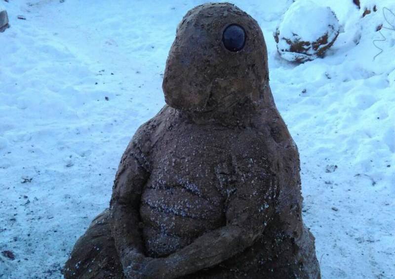 В будущем скульптура поменяет свою прописку. Специально для удобной транспортировки художник сделал живот Ждуна полым.