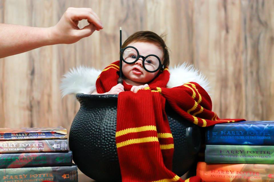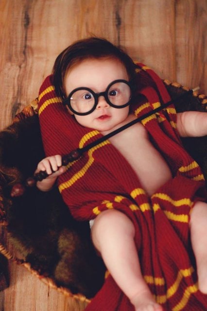 Грейс всего четыре месяца, однако она уже успела покорить Сеть своим перевоплощением в Гарри Поттера. Родители одели на нее шарф Грифиндора, а также круглые очки. На фото девочка держит также волшебную палочку. А вокруг нее разложены все книги об известном волшебнике.