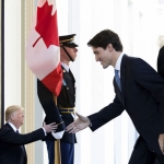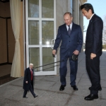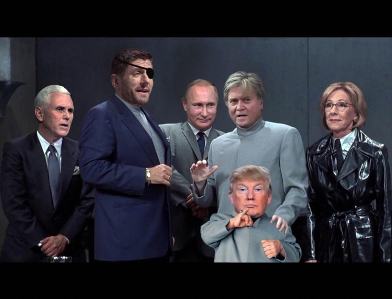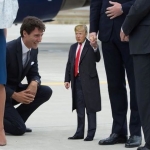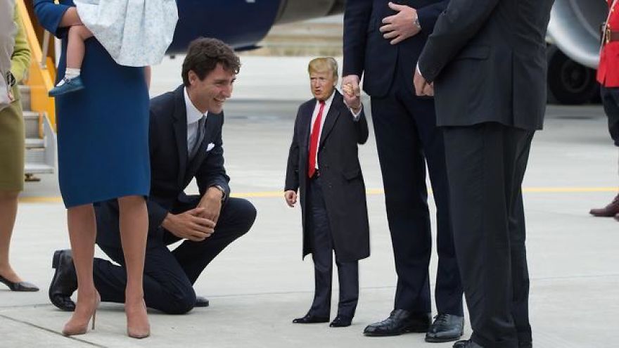 По сети активно расходится новый мэм «крошечный Трамп». При помощи фоторедакторов пользователи уменьшают действующего президента США, придавая ему таким образом комизма. Лилипут-президент на этих снимках играется с кошками, которые ему вровень и смешно пожимает руку другим главам государств.