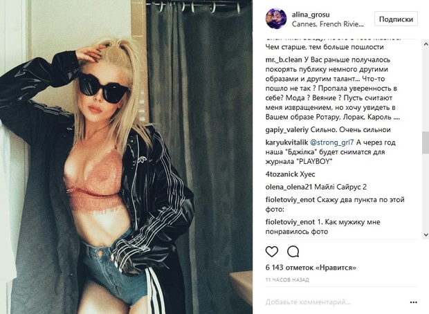22-летняя украинская певица, которая в последнее время живёт в Москве, Алина Гросу, зачастила с публикацией в социальных сетях своих откровенных фотографий. И если раньше читатели с радостью «лайкали» и комментировали её снимки, то на этот раз артистка нарвалась на критику.