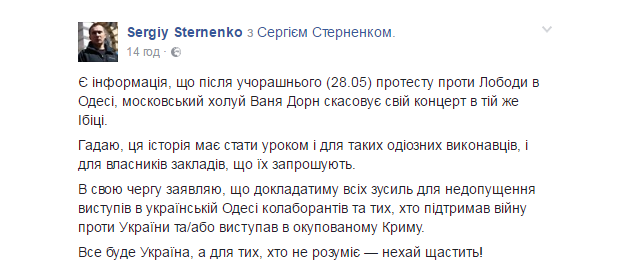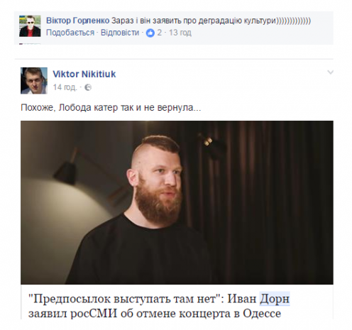 Пользователи социальных сетей очень агрессивно отреагировали на заявление Ивана Дорна отменить концерт в Одессе, который был запланирован на 9 июня.