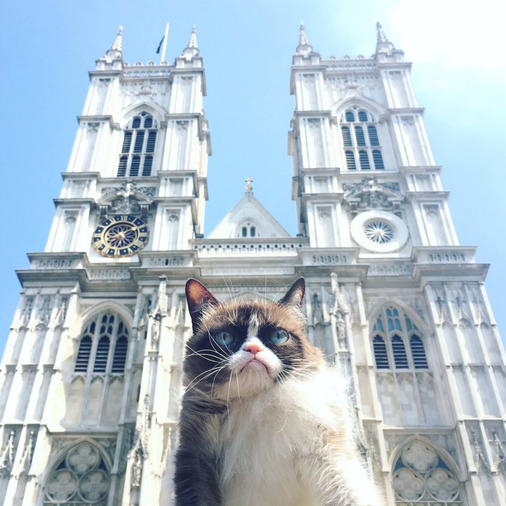 Американская кошка Соус Тардар, более известная как Сердитый Котик, осмотрела достопримечательности Лондона. Об этом пишет Evening Standard.