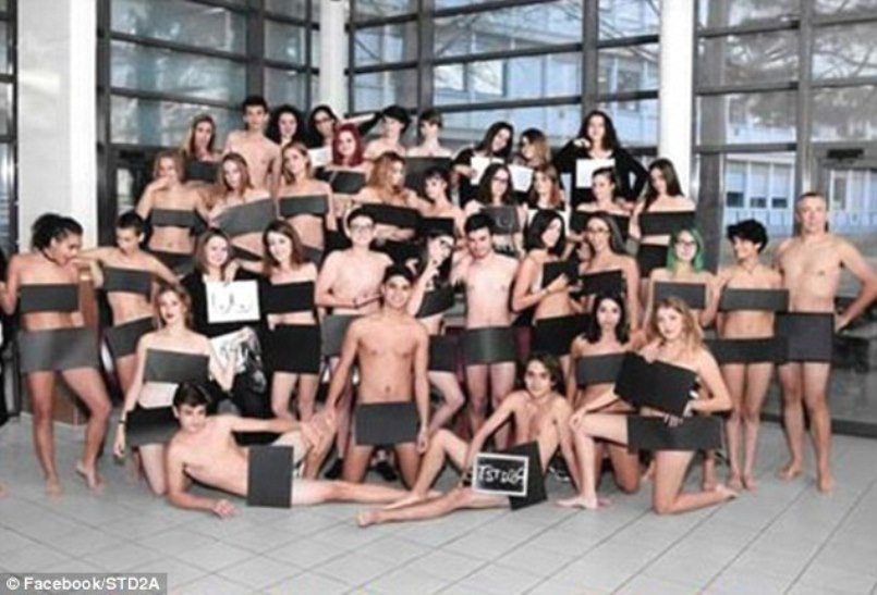 Выпускники высшей школы Авиньона (Франция) по классу науки и технологий предстали на коллективном выпускном фото с учительницей, полностью обнажившись. Всем, кроме преподавателя, на снимке 17-18 лет.