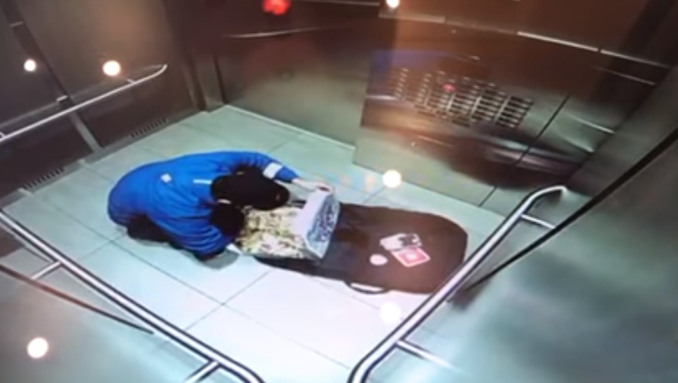 Этот инцидент имел место в Канаде. Камера внутреннего наблюдения зафиксировала как доставщик пиццы Domino’s, едва дождавшись закрытия лифта. Открывает коробку с пиццей покупателя и начинает облизывать и есть соус. Затем он закрывает коробку как ни в чем ни бывало.