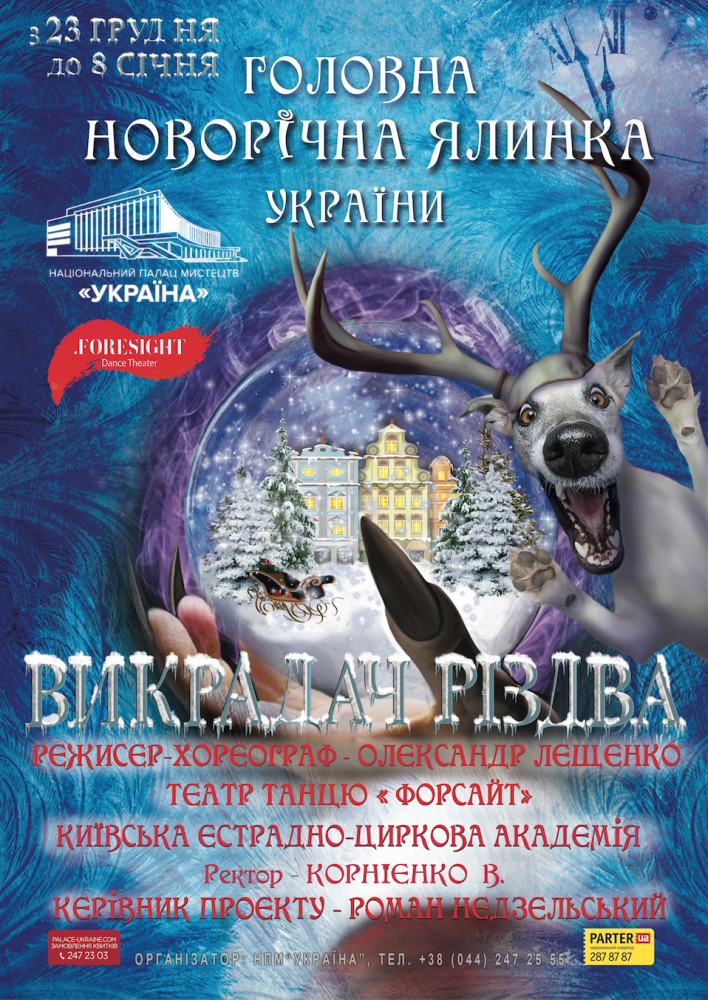 Накануне новогодних праздников и в их период, с 23 декабря по 8 января, Дворец Украина и самый гастролирующий театр танца Лины Верес «Форсайт» представят увлекательный шоу-спектакль «Похититель Рождества», который подарит сказочную атмосферу детям и их родителям. Отшельник и ворчун Гринч, который ненавидит Рождество, планирует любыми способами сорвать зимние праздники в сказочном городке, где каждый обожает веселье, подарки и новогоднее настроение.