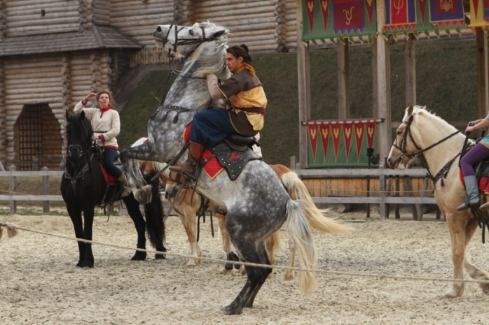 Эти прекрасные создания каждый день проводят с детками и взрослыми и каждые выходные принимают участие в шоу-программах и соревнованиях по историческим конным боевым искусствам. А конные каскадеры, которые будут принимать участие в программе, являются одними из выдающихся в Украине. Неудивительно, что конный театр Древнего Киева регулярно приглашают участвовать в разнообразных фестивалях, городских мероприятиях, киносъемках как в нашей стране, так и за ее пределами.