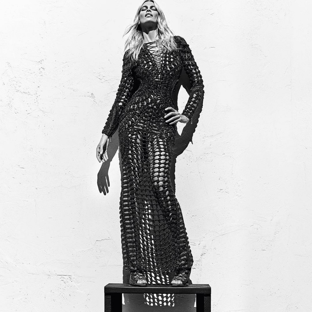 Клаудия, Наоми и Синди позируют в обтягивающих откровенных нарядах, подчеркивающих изгибы их стройных тел. Платья и брюки с рюшами, глубокие декольте и сетка сделали признанных топ-моделей еще красивее.