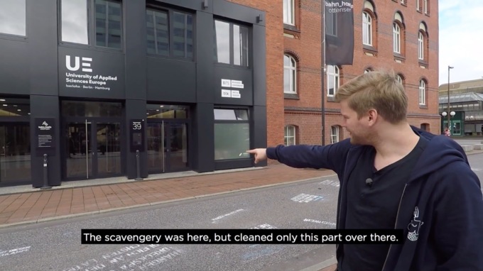 Уязвленный этим художник собрал 30 самых оскорбительных твитов, сделал из них трафареты для граффити и ночью нанёс из перед главных офисом социальной сети в Гамбурге.