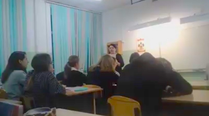 На видеозаписи ученики средней общеобразовательной школы № 11 исполняют песню «Дядя Вова, мы с тобой».