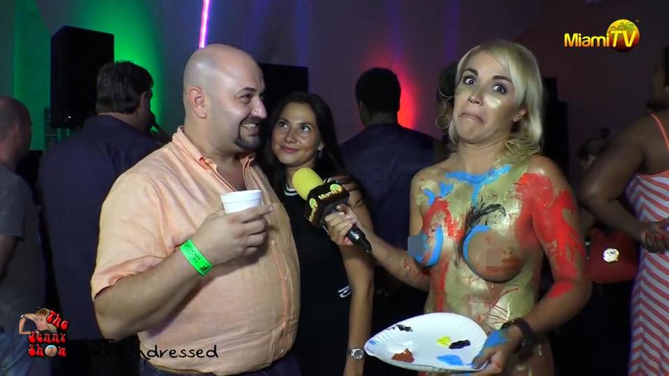 Скандально известная американская телеведущая Miami TV Дженни Скордамаглия вновь решила эпатировать публику. В этот раз журналистка пришла на выставку в галерею полностью голой и предложила посетителям разрисовать ее тело краской.