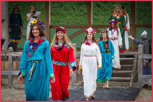 Девушки продемонстрируют свои знания по истории Киевской Руси, физическую подготовку в перетягивании каната и боях на мешках. И конечно, проявят тебя во всей красе, дефилируя в купальниках и вечерних платьях.