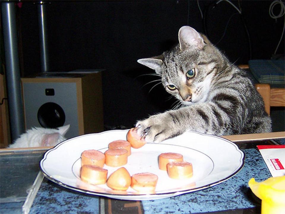Эти питомцы не смогли удержаться от соблазна стащить со стола бутерброд или откусить кусочек брошенной на произвол сосиски. Правда, их маневры удалось запечатлеть на камеру, сделав котов звездами Сети.