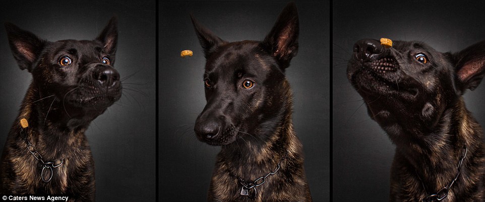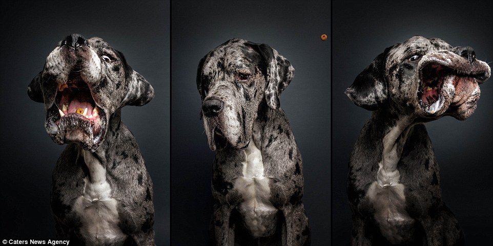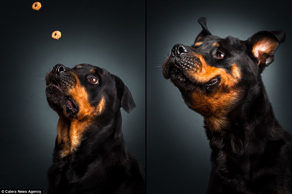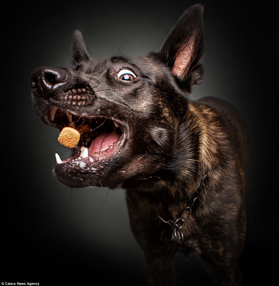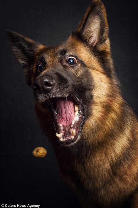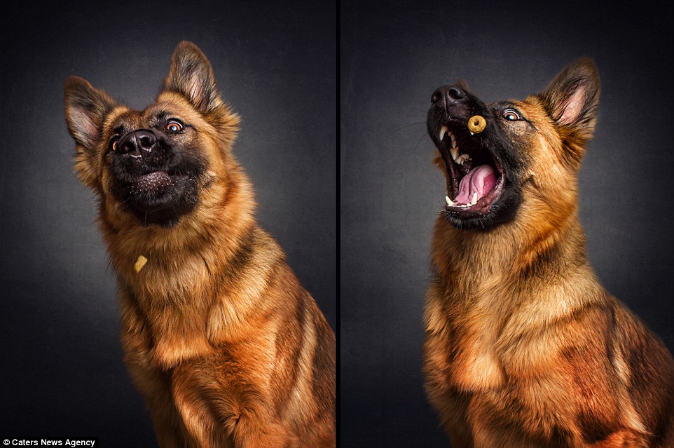 Немецкий фотограф Кристиан Виелер сделал серию снимков собак, которые пытаются словить кусочек корма, сообщает Tne Daily Mail.