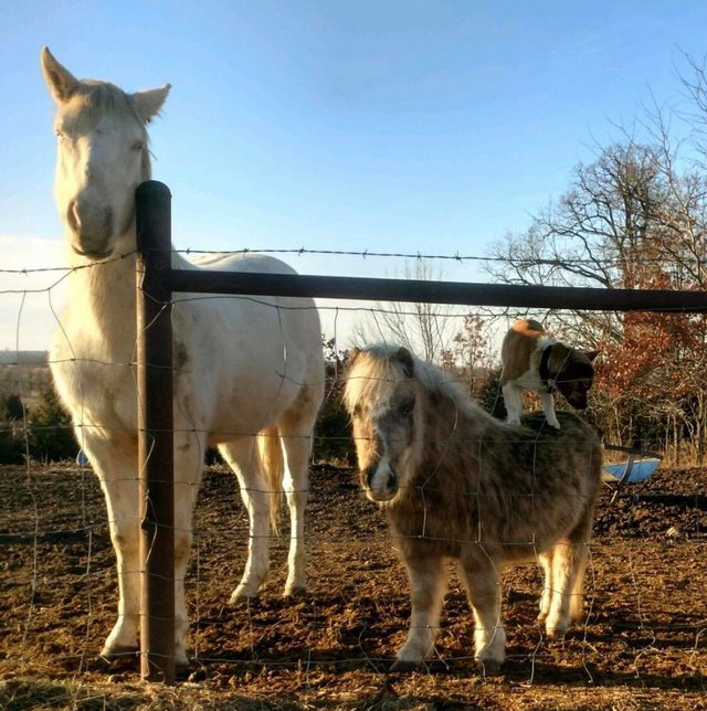 Однажды Келли Шенкер приехала домой на свою ферму поздно ночью и не поверила тому, что увидела. Ее одноглазый карликовый пони Крикет катал на спине соседского пса породы корги. Об этом сообщает The Dodo.