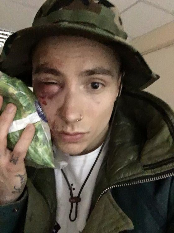 «Вступил в бойцовский клуб, тот случай, когда 2 против 15», — подписал свое фото с окровавленным лицом и заплывшим глазом в Facebook солист Quest Pistols.