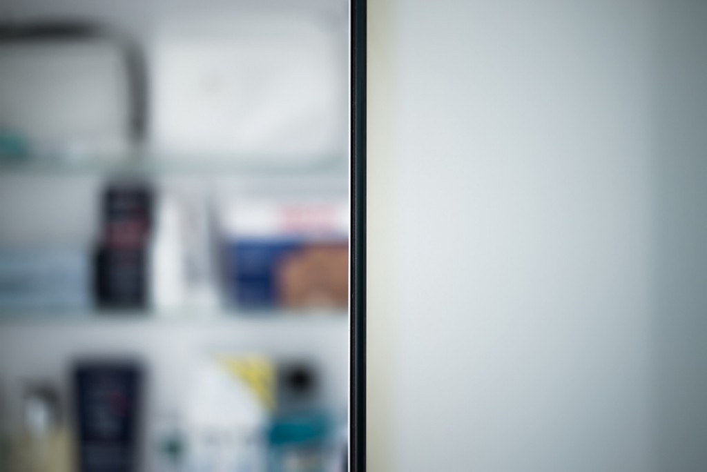 Толщина дисплея составляет всего несколько миллиметров и он встроен в прослойку между зеркалом и дверцей шкафчика.