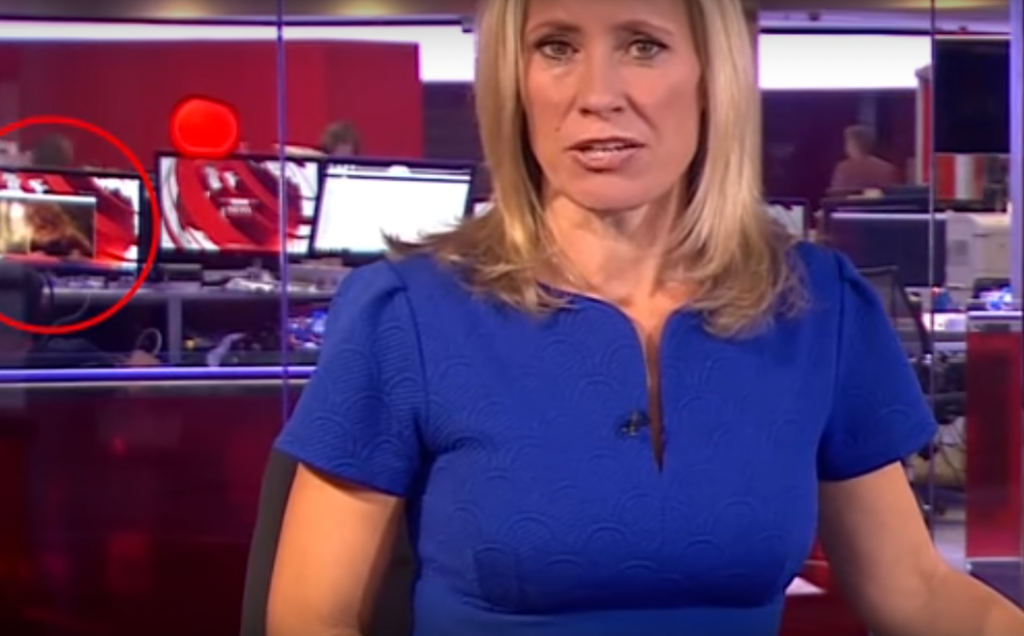 В ходе выпуска новостей один из сотрудников канала ВВС смотрел фильм для взрослых на мониторе, который был повёрнут прямо в камеру. Таким образом в кадр попала женщина, которая раздевается перед лежащим на диване мужчиной.