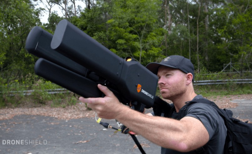 Австралийская компания DroneShield создала специальный пистолет для охоты за дронами. Пресса сравнивает форму этого оружия с пулемётом Рембо.