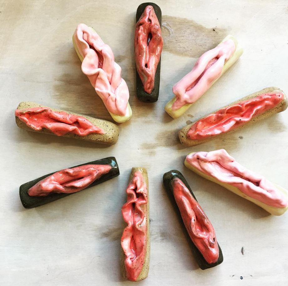 Нью-йоркская художница Кейтлин Роуз Свит создала серию мундштуков, которые украшены скульптурным изображением половых губ женщины.
