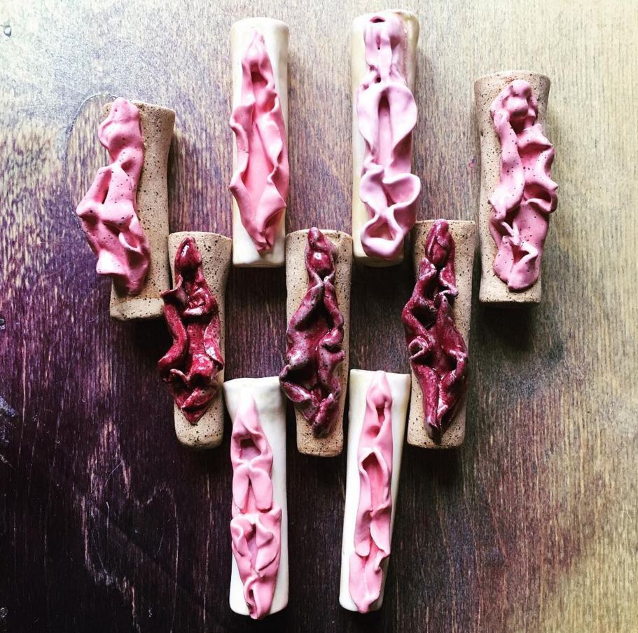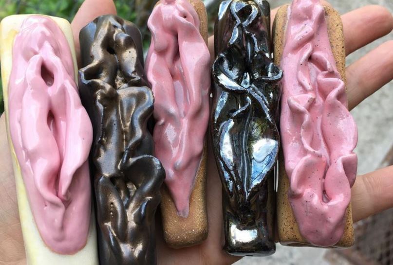Нью-йоркская художница Кейтлин Роуз Свит создала серию мундштуков, которые украшены скульптурным изображением половых губ женщины.