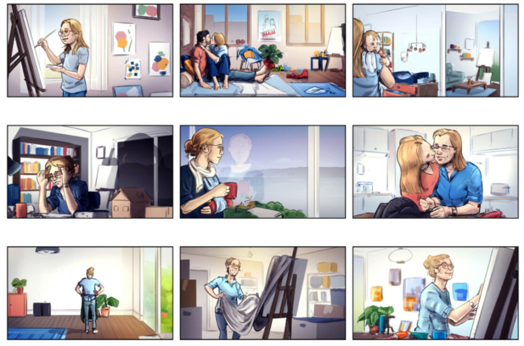 Согласовав сценарий с заказчиком, команда студии приступает к созданию раскадровки. На этом этапе крайне важна тесная коммуникация между режиссером и художником, ведь именно от их взаимодействия и точности технического задания зависит то, насколько точно удастся воплотить режиссерскую задумку в сториборде и, соответственно, в готовом видео.