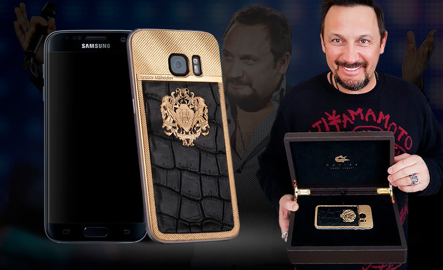 Компания Caviar распространила информацию о том, что российский певец Стас Михайлов стал обладателем именного позолоченного смартфона Samsung Galaxy S7, который покрыт крокодиловой кожей и украшен геральдикой. Таких телефонов, по данным компании, только два: у самого певца и его супруги.