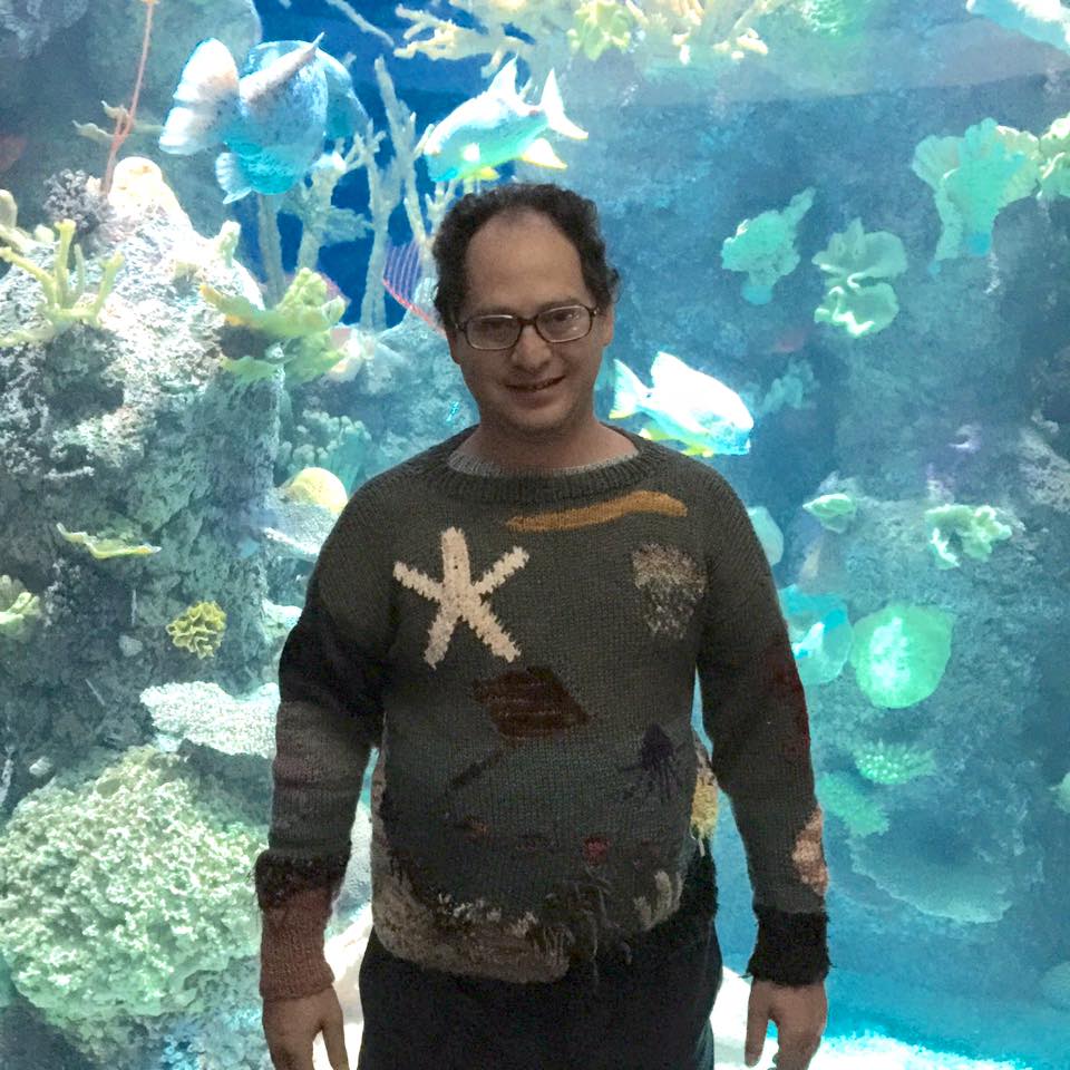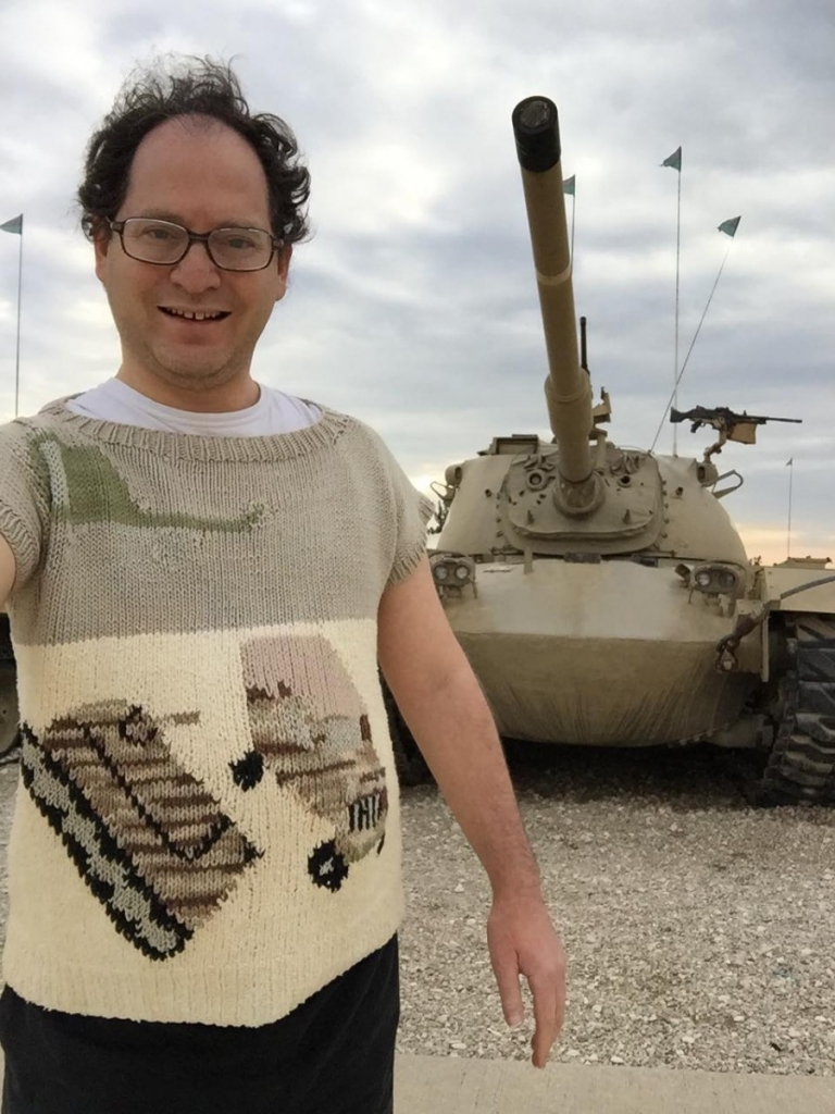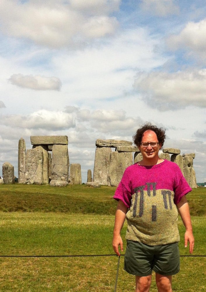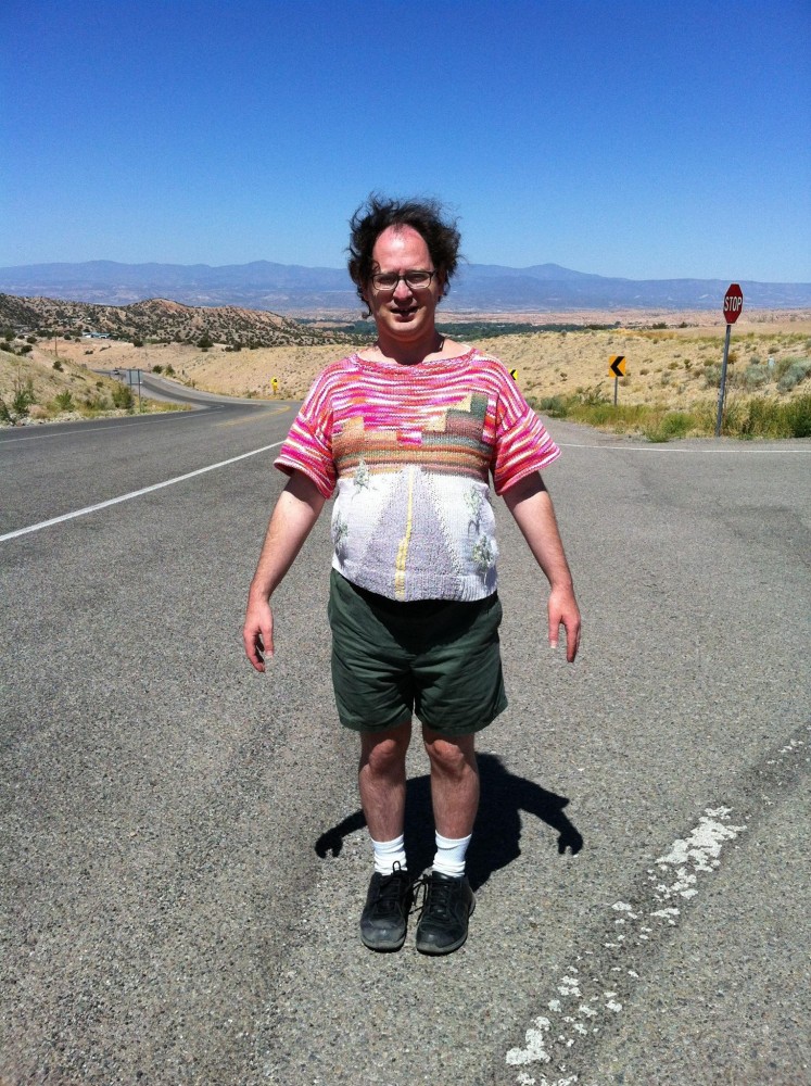 Вирусную популярность в сети приобрели фотографии, на которых изображается один и тот же мужчина в странных свитерах. Он вяжет их так, чтобы на груди изображалось место, где он хочет побывать. А когда свитер готов – отправляется туда и фотографируется в нём на фоне этого самого места. Из достопримечательностей в его одежде можно различить Таймс Сквер, Стоунхэндж, Эйфелеву башню, Манхэттен, а также многие парки и музеи.