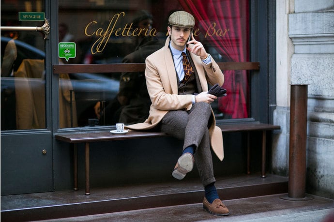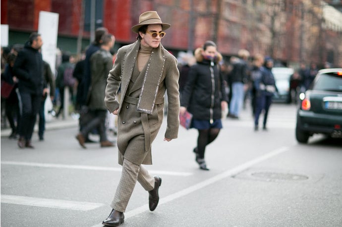 Изучаем наряды гостей показов мужской недели моды в Милане. Итальянцы делают ставку на многослойные комплекты разных фактур, расставляя акценты при помощи ярких аксессуаров: шарфов, очков, шляп и носков.