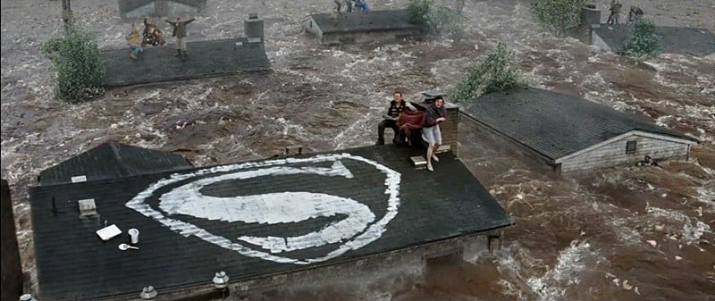 Налет бэтаплана снимали в несколько этапов: сначала на площадке подорвали пиротехнические заряды, после этого на фоне зеленого экране взорвали три автомобиля, потом видео совместили, добавили компьютерную графику и самолет Бэтмена.