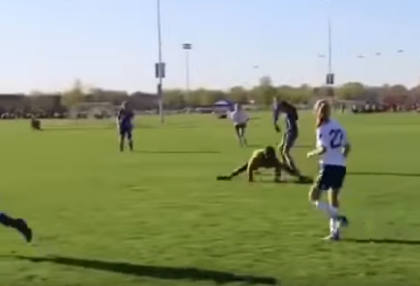 Во время юношеского футбольного матча в Айове (США) девушка-судья оригинально пригнулась, чтобы не зацепить мяч. Для этого она внезапно села на шпагат. Видео, на котором показывается такой неожиданный приём, стало вирусным в социальных сетях, пишет «НВ».