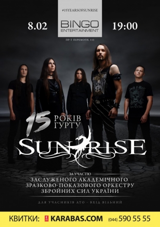 Power metal группа Sunrise отпразднует 15-летие творческой деятельности большим концертом с участием Заслуженного академического оркестра Вооруженных Сил Украины. Выступление состоится 8 февраля в столичном клубе Bingo.