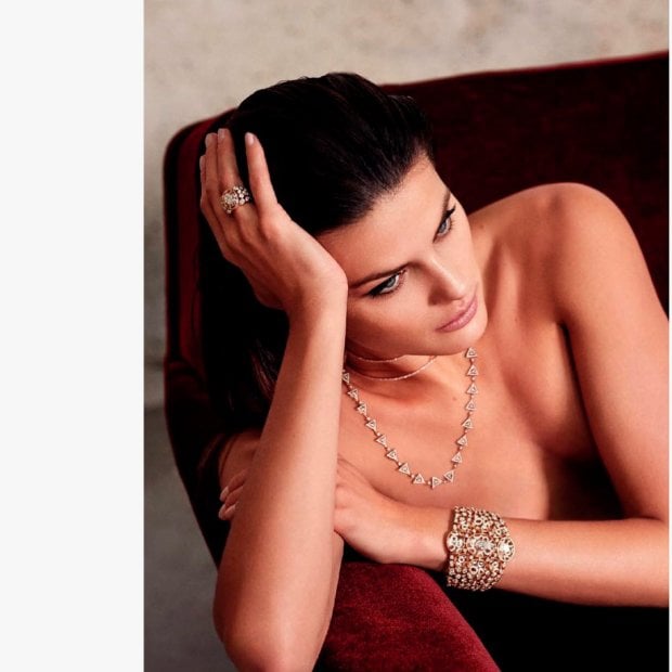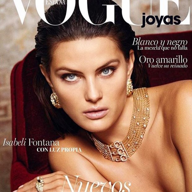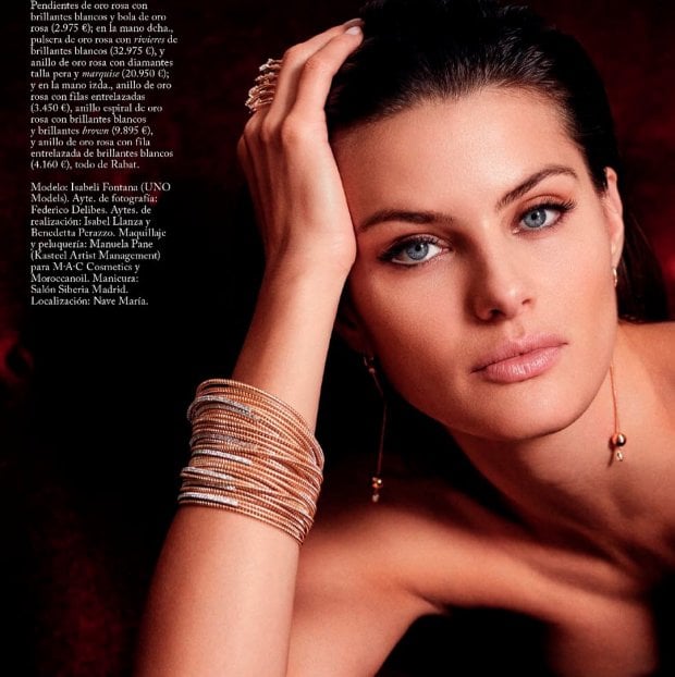 34-летняя бразильянка Изабели позировала перед камерой топлесс, прикрывая пикантные места тела красивыми золотыми колье, браслетами и кольцами. Модели сделали укладку с эффектом мокрых волос и естественный макияж с акцентом на едва заметную розовую помаду.