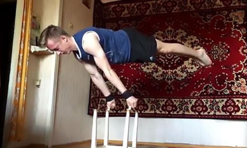 Сеть восхищается парнем, который держит равновесие всего на двух пальцах рук
