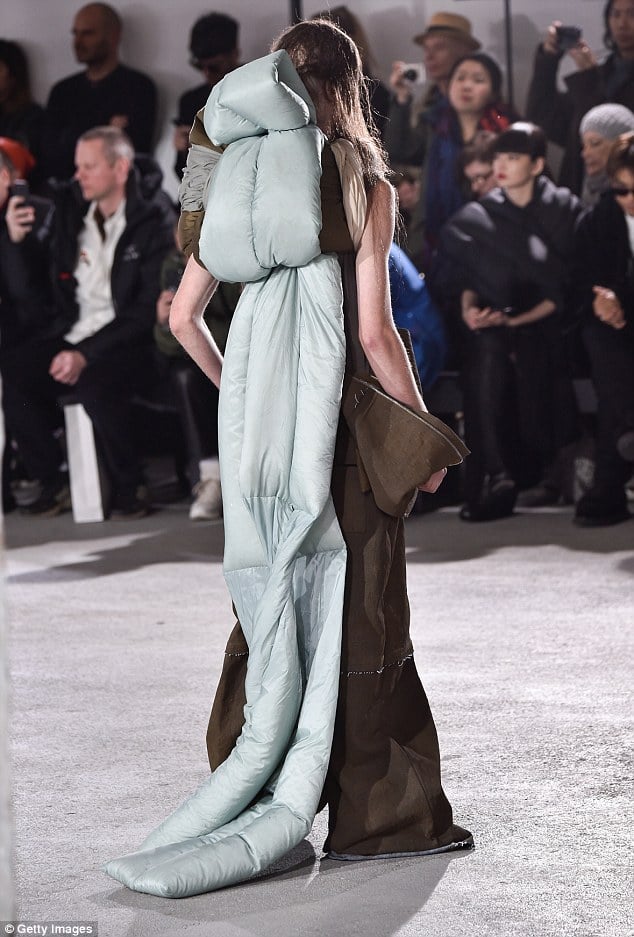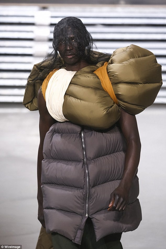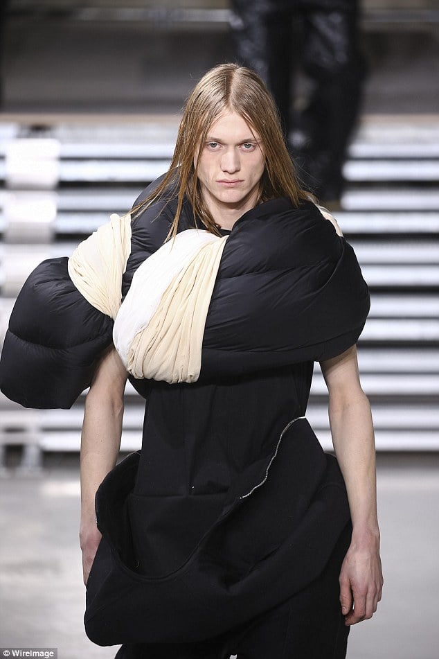 Дизайнер Рик Оуэнс на Парижской недели моды представил необычную коллекцию мужской одежды. Все его модели на поминали спальне мешки, привязанные к телу веревками. Сам модельер творениями доволен, ведь он хотел создать нечто яркое и необычное и это у него получилось, передает Daily Mail.