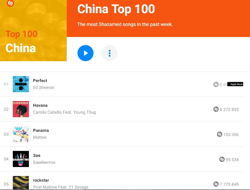 Оказалось, что трек «Зая» оказался в ТОП-100 песен, которые искали на прошлой неделе в Китае. Мало того песня заняла четвёртую позицию после композиций Ed Sheeran, Camila Cabello и Matteo.